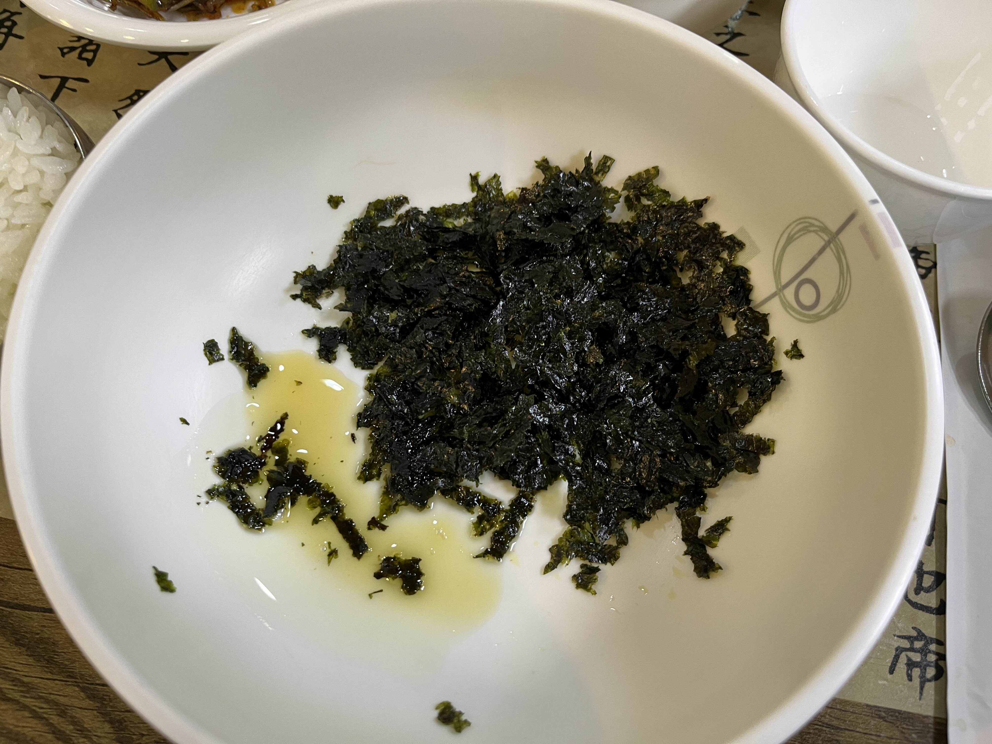 그리고 큰 대접에 참기름과 김가루를 듬뿍 주셔서 밥을 먹다가 원하는 맵기로 조절하여 비벼먹을 수 있다.