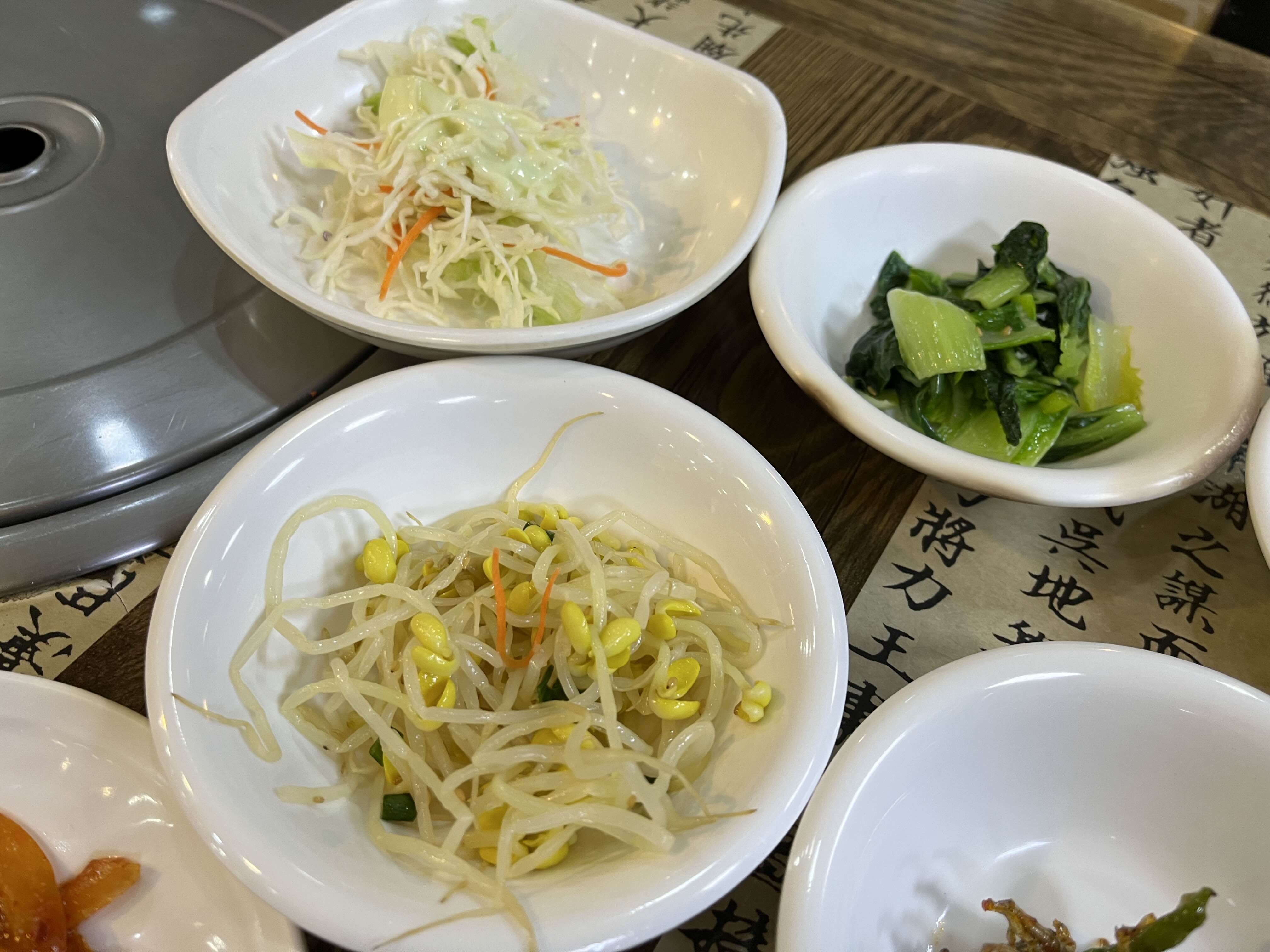 양배추 샐러드와 함께 같이 비벼먹기 좋은 콩나물 무침과 나물도 주신다. 혼밥이지만 콩나물은 더 달라고 하면 더 주신다.