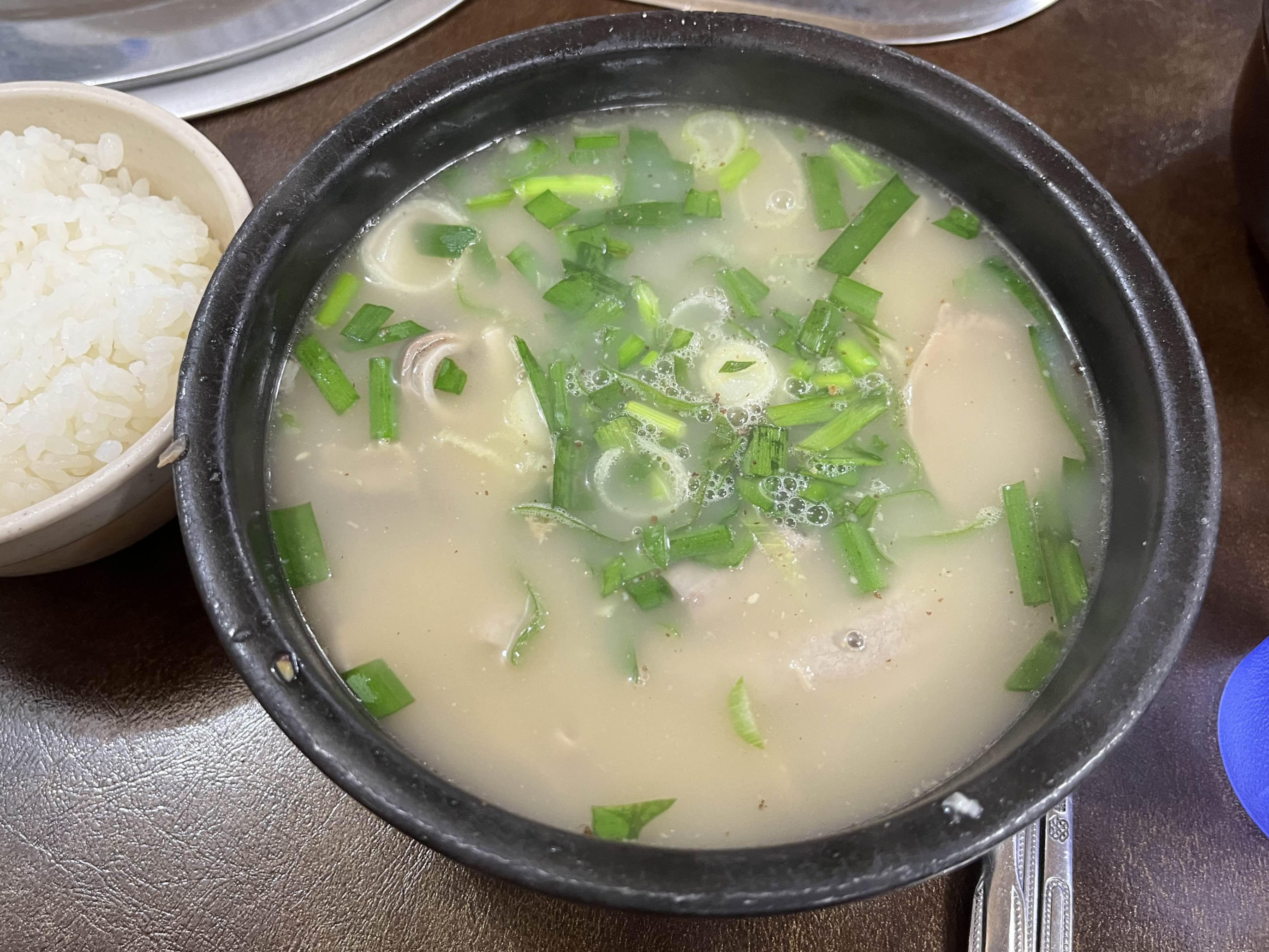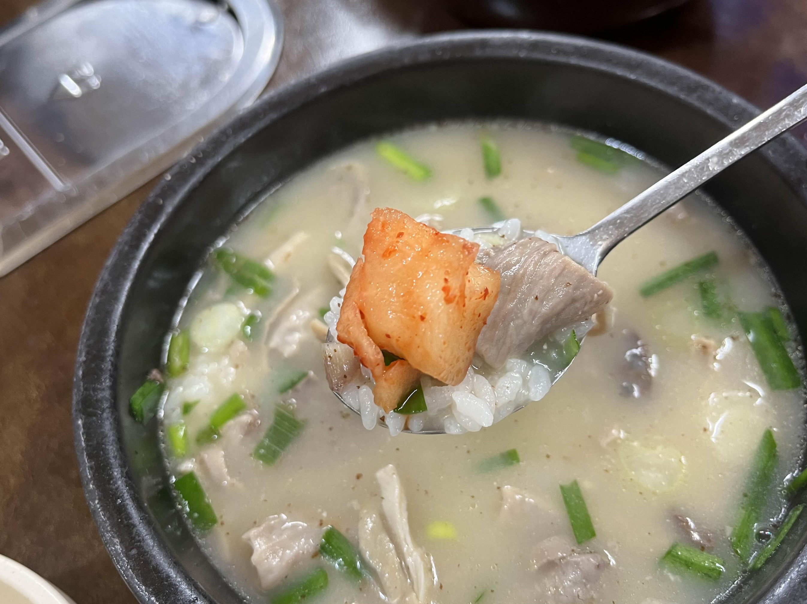 밥을 국에 말고 나니 뽀얀 국물이 밥알 하나하나에 코팅되어 더욱 먹음직스러워보였다. 고소한 국밥 냄새가 후각을 자극했다.