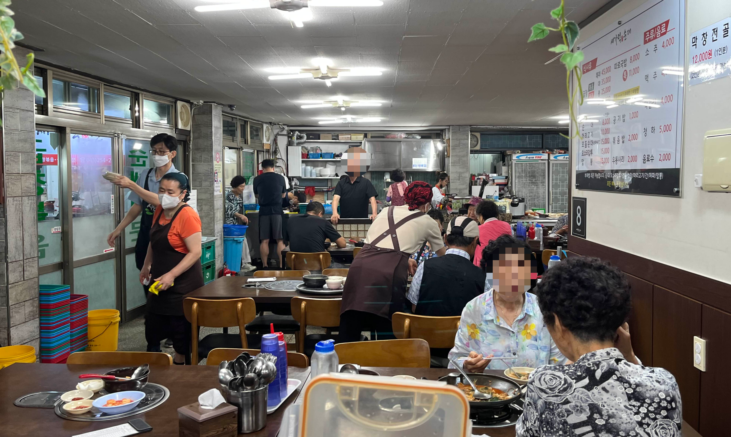 밖에서 보기에는 가게가 넓어보이지 않았는데 안쪽에는 많은 좌석이 있었다. 시장 맛집인데다 마침 점심시간이어서 많은 사람들이 식사를 하고 있었다.
