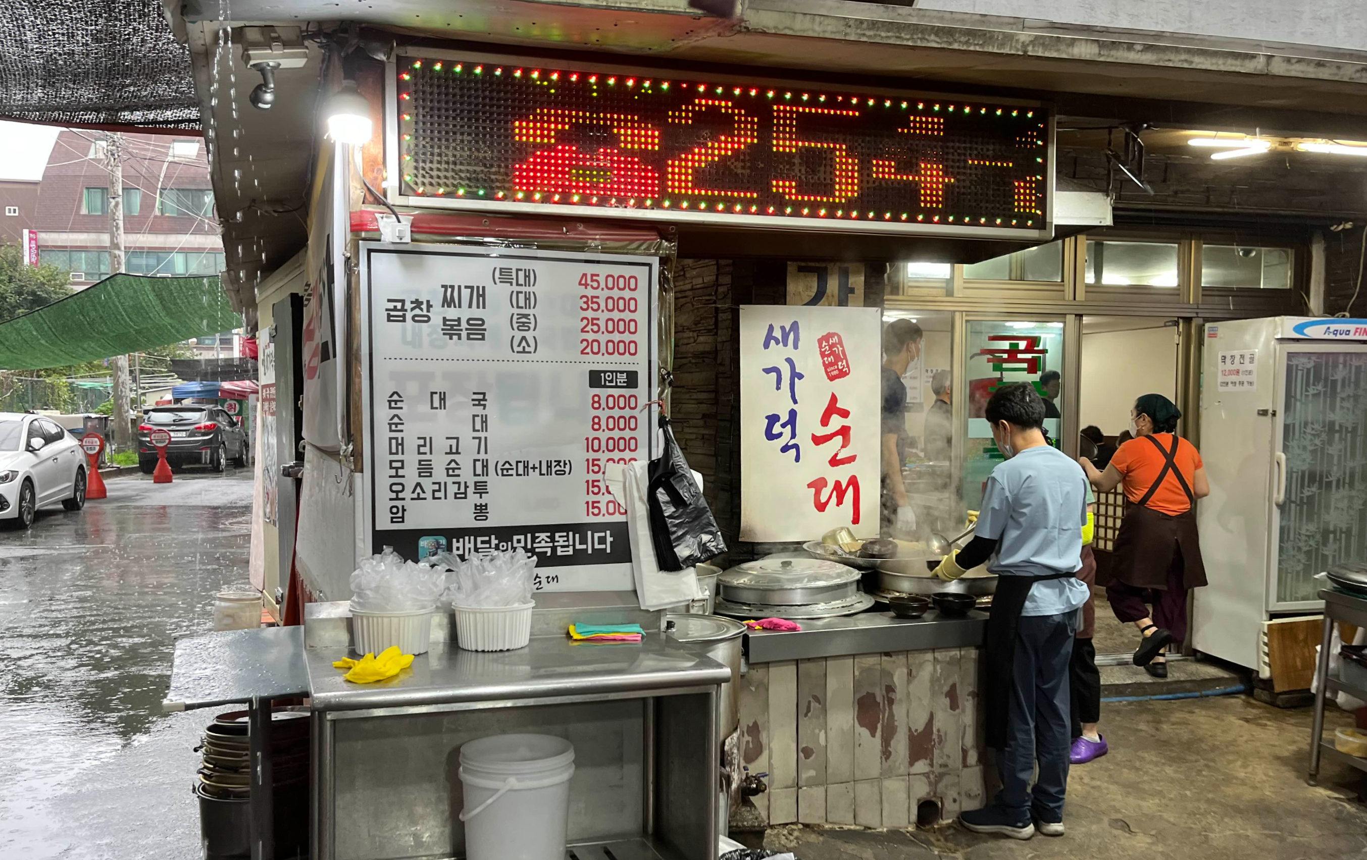 새가덕 순대는 한 눈에 봐도 시장맛집의 느낌이 나는 곳이었다. 들어가기 전부터 안쪽에 많은 사람들이 있는 것을 알 수 있었다.