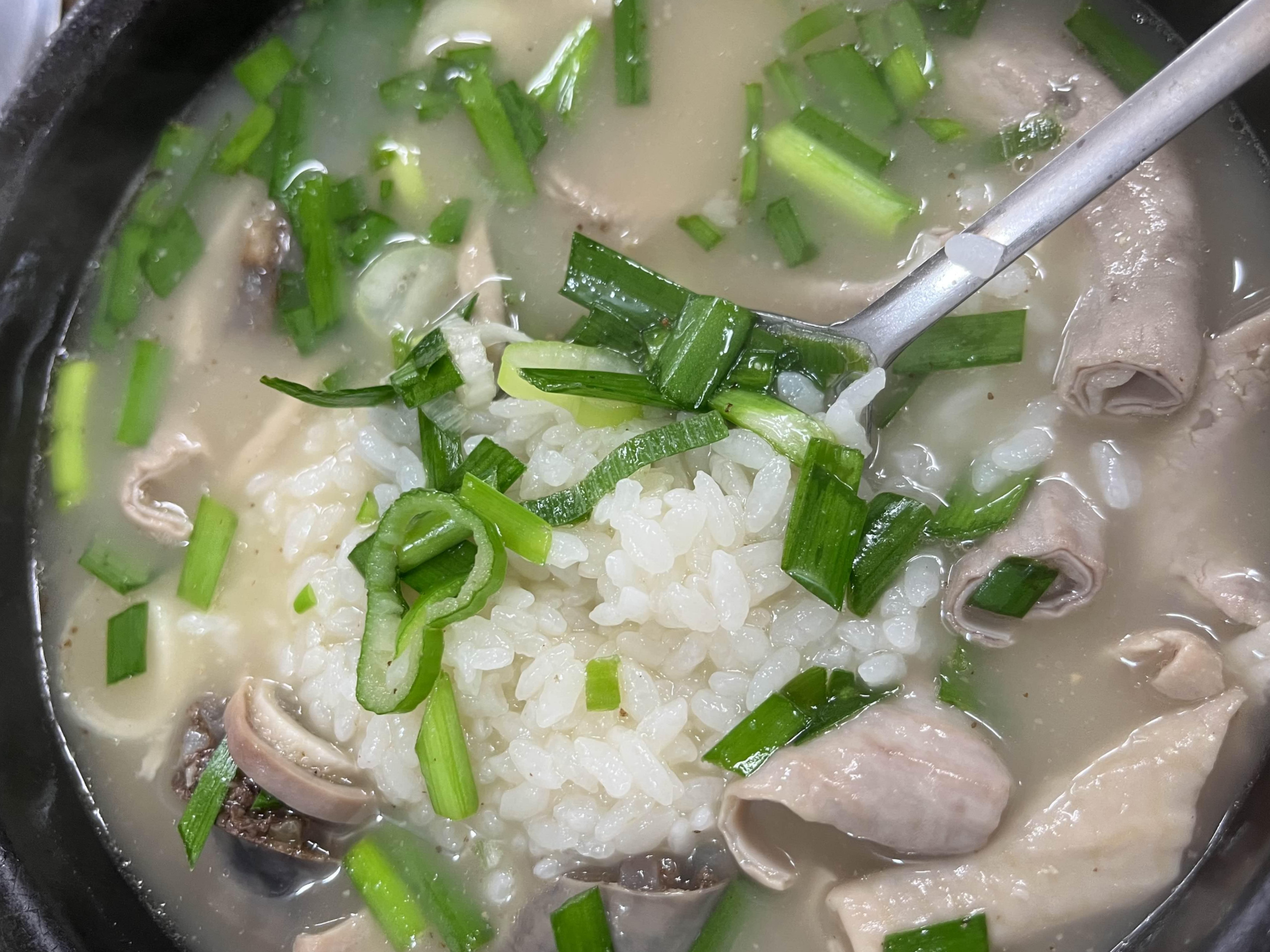 그 때는 인지하지 못했는데 들깨가 없었따 ㅋㅋㅋㅋ 잘게 썬 부추가 들어있어서 국밥맛을 더욱 돋구어주었다.