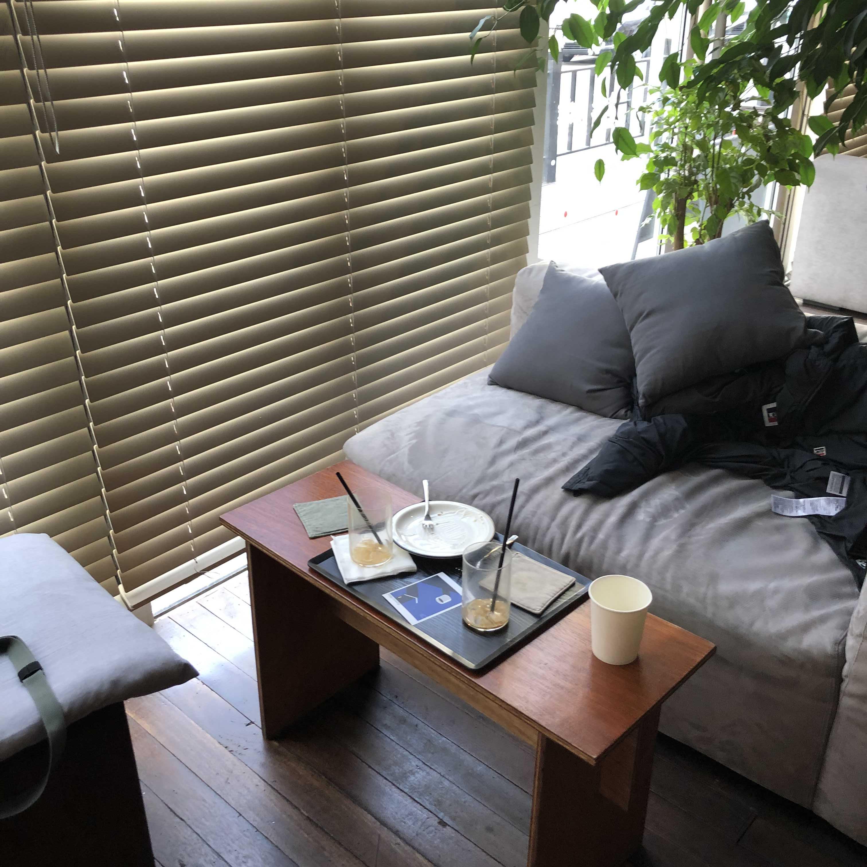 우리가 앉았던 자리. 쇼파 좌석이라 편했는데 통유리 창 옆이라서 무지 추웠다. 안쪽에 앉은 사람은 좀 낫다고 하는데 창가에 앉은 나는 패딩을 입고 있어야 하는 정도였다. 그래도 조용하고 편한 분위기에 널찍한 공간에서 휴식시간을 보낼 수 있어 안락하게 느껴졌다.