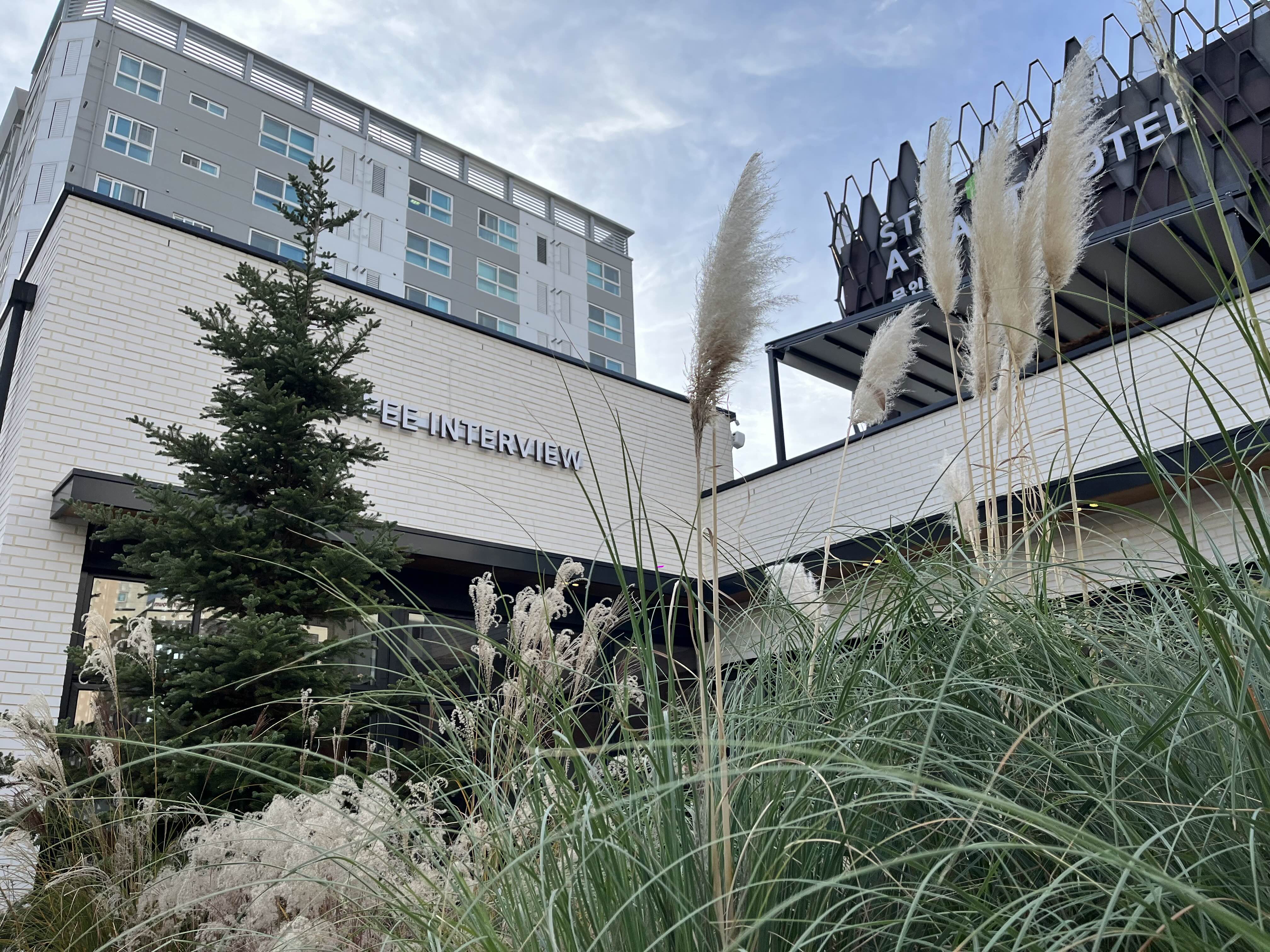 사진찍은 벽 왼쪽 길로 들어서면 이렇게 나무와 억새와 풀들이 높게 심어져있고 건물이 기역자로 배치되어있는 것을 확인할 수 있다. 내부 사람들을 쉽게 볼 수 없는 구조다. 생각해보니 주변에 모텔들이 많기 때문에 이렇게 지었을지도 모르겠다. 부지가 넓고 봉명동 카페거리 근처에 있지만 번쩍거리는 모텔과 룸싸롱 등이 주변에 산재해있다보니......감성뷰를 즐기기 위한 특단의 조치일지도