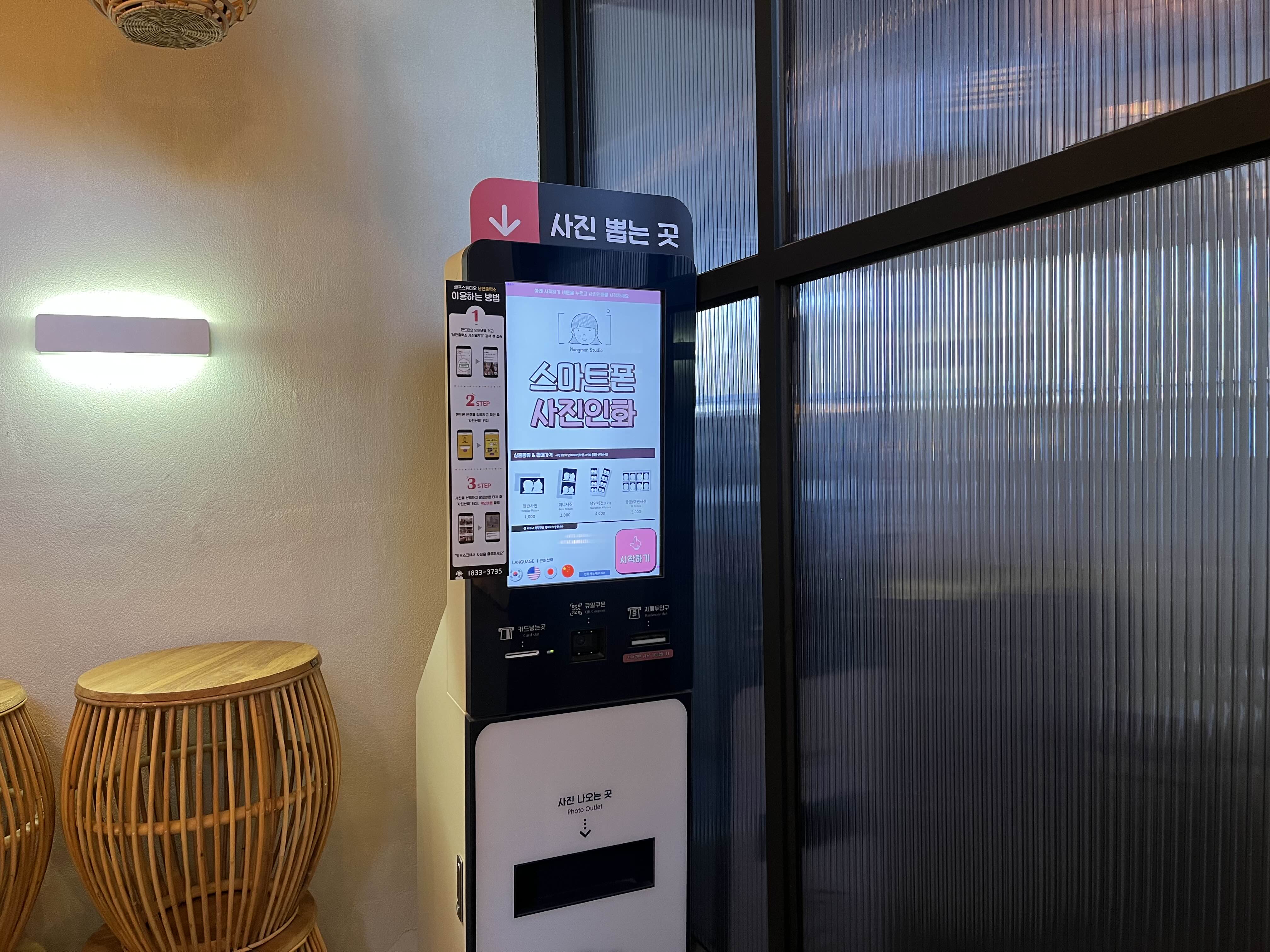 옆의 기계로 보내면 인생네컷을 인쇄할 수도 있다! 신세계 요즘 이런걸로도 장사하는구나 생각했다. 예쁜 공간을 이용한 마진 극대화..