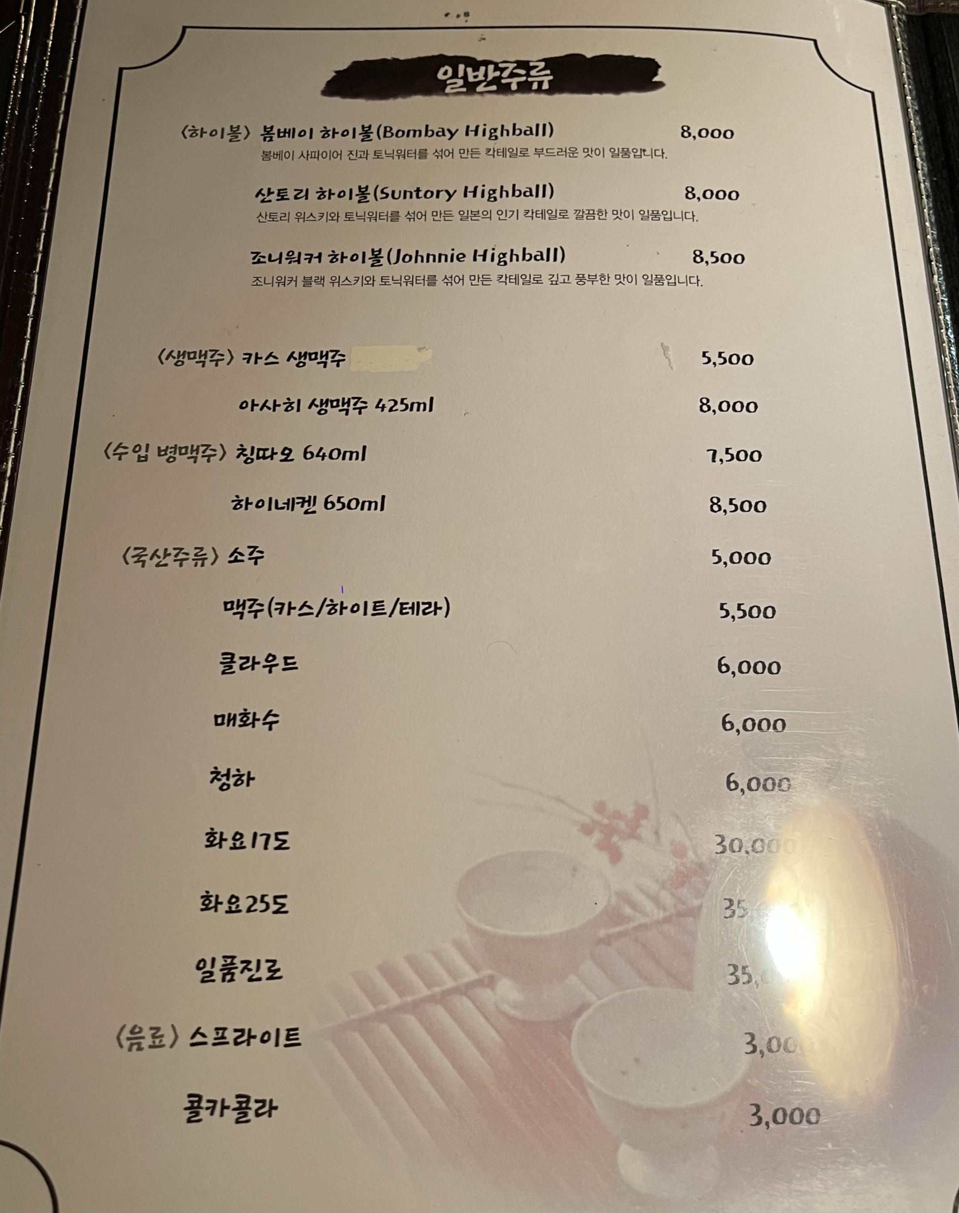 이외에도 마른안주와 튀김 등이 있는데 가격대가 높이 형성되어 있어 토모를 방문한 연령대도 20대보다는 30대 이상이 많은 것 같았다. 나도 물론 30대지만
