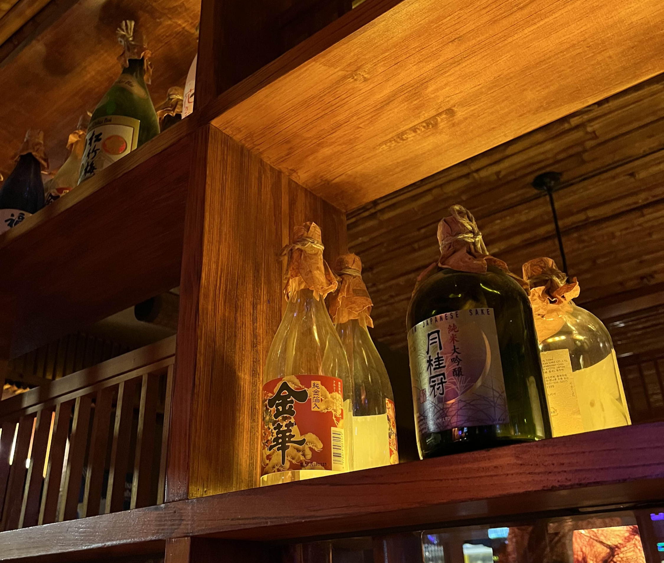 토모는 좌석이 굉장히 많았는데 사람이 많아서 실내를 제대로 찍지는 못했다. 약간 어두운 분위기에 사케 병들로 주변이 꾸며져 있다.