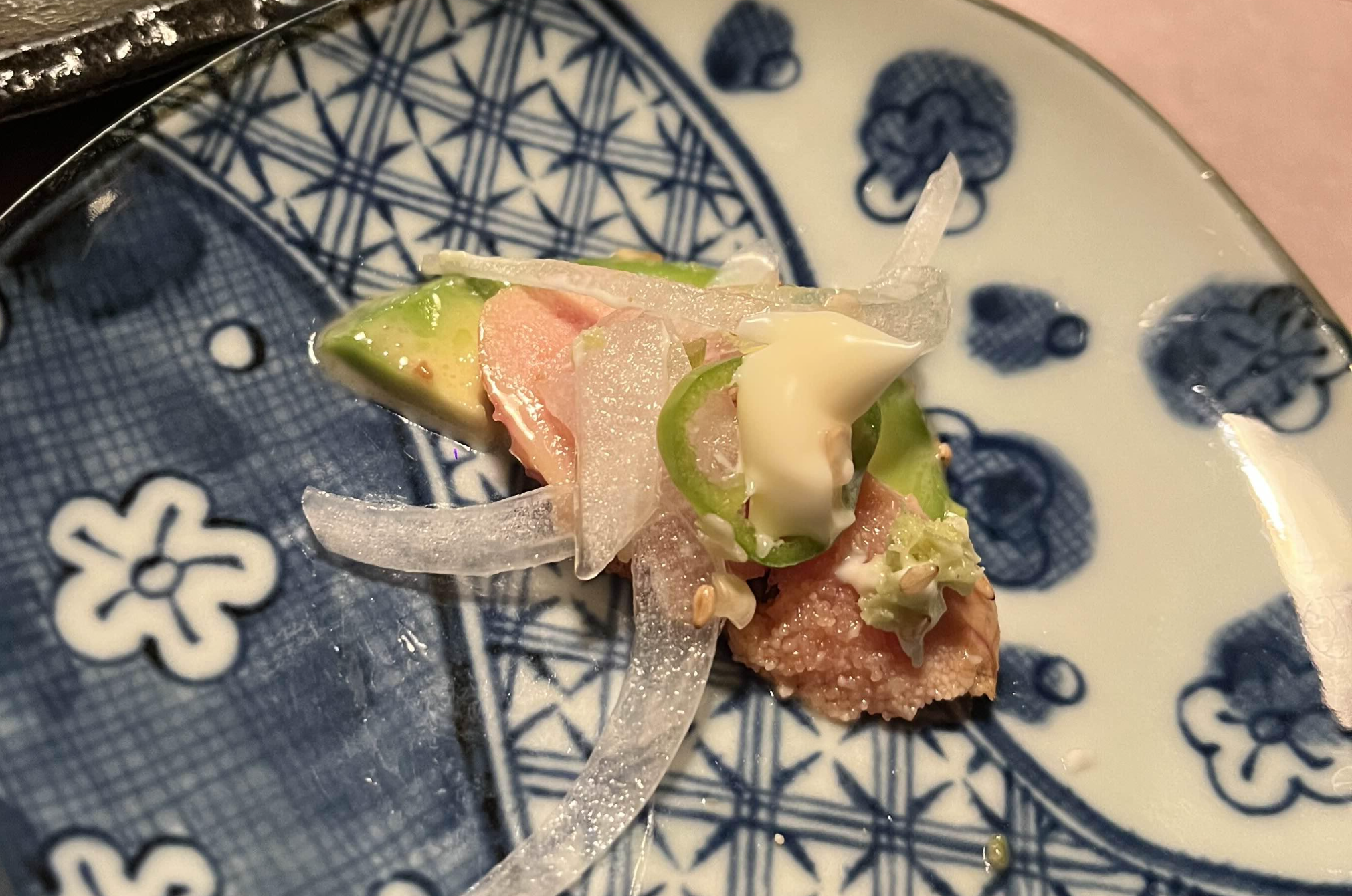 아보카도와 명란을 한데 얹고 양파와 매운 고추, 마요네즈에 와사비까지 풀로 장착하여 한입 맛보았다. 내가 기대한 그 맛 맛있는 맛이었다.