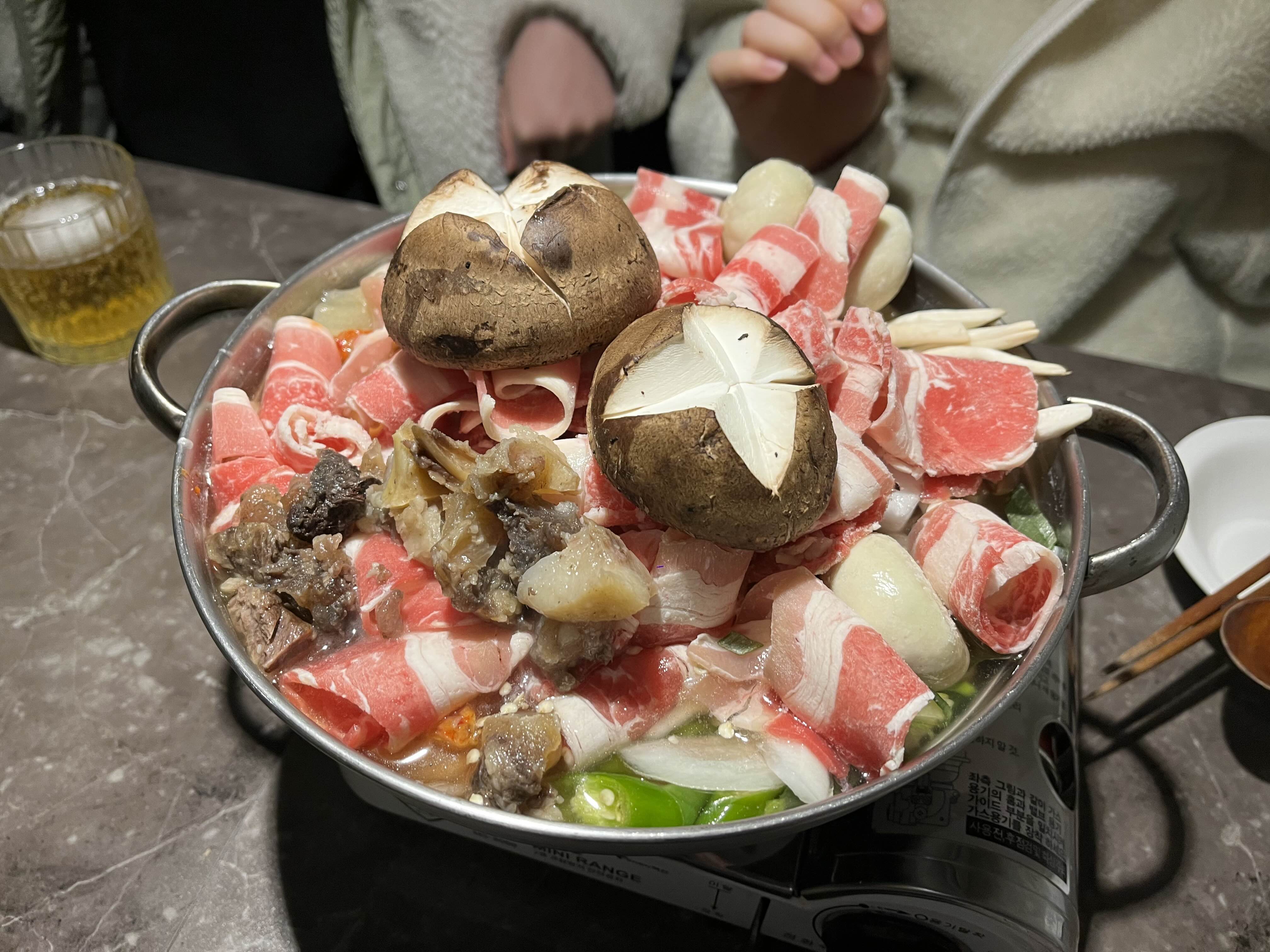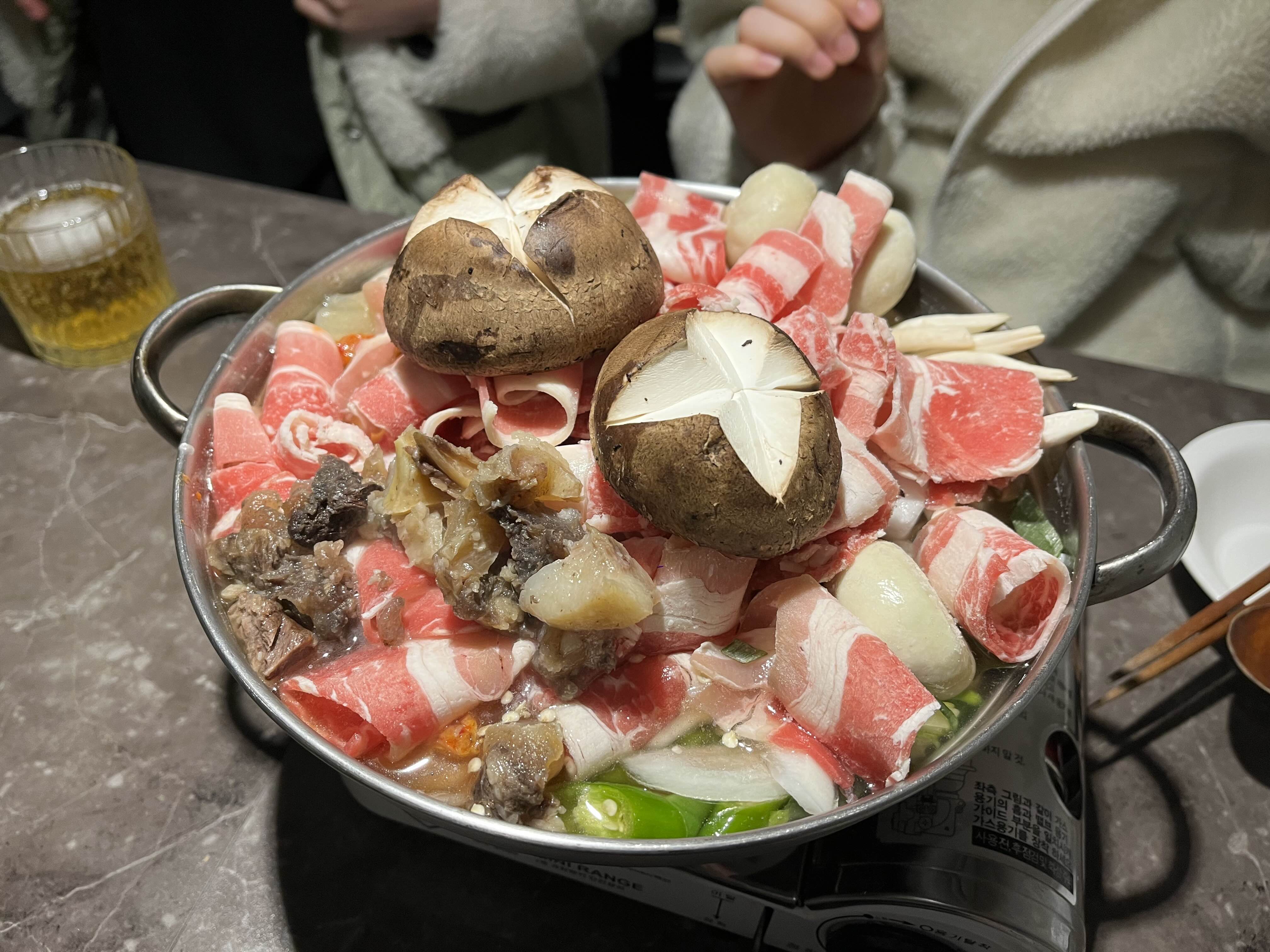 첫번째로 나온 음식은 우삼겹듬뿍버섯전골 ! 여기 두 번 가서 두 번 먹었는데 맛있었다. 버섯도 많고 탱탱해서 먹는 즐거움이 있었음