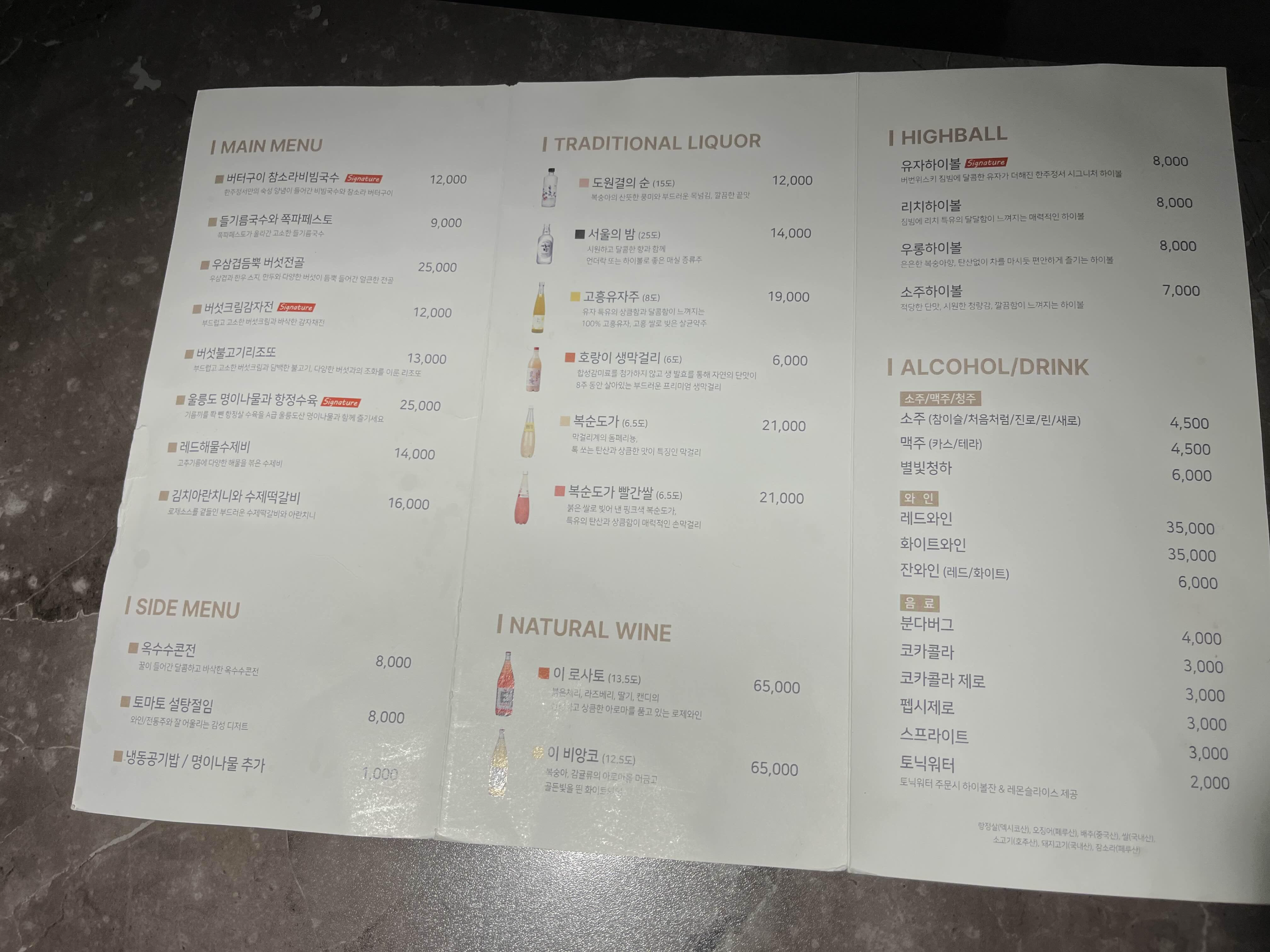 이날 찾아간 한주정서는 봉명동 우산거리 바로 뒤쪽인 스카이뷰 빌딩에 있다. 이렇게 메뉴판이 밖에 있어서 메뉴가 뭐가 있는지 확인하고 들어갈 수 있어 좋았다.
