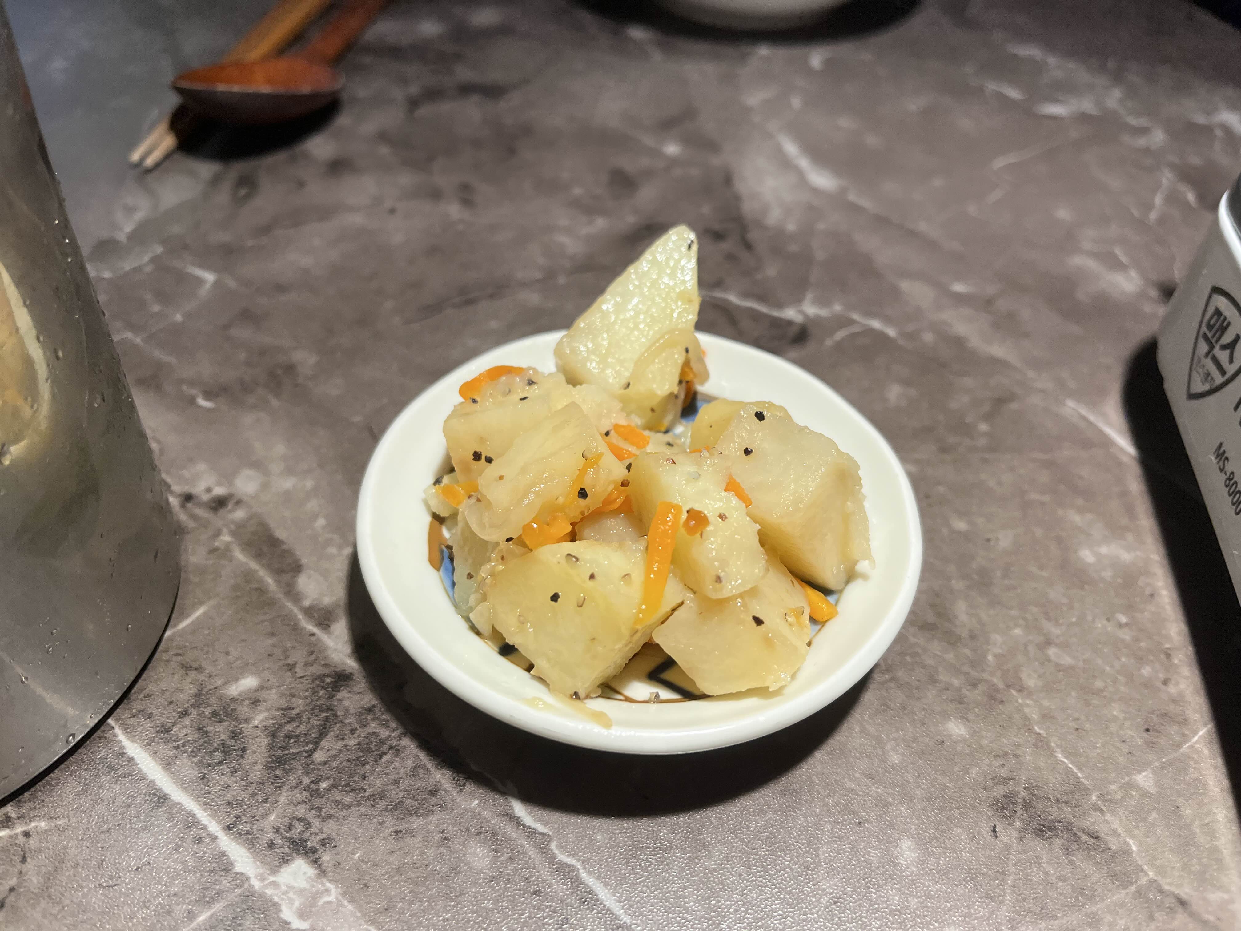 기본안주는 정성스럽게 볶은 감자였다. 밑반찬인데도 예쁘게 준비해주셔서 기분이 좋았다.
