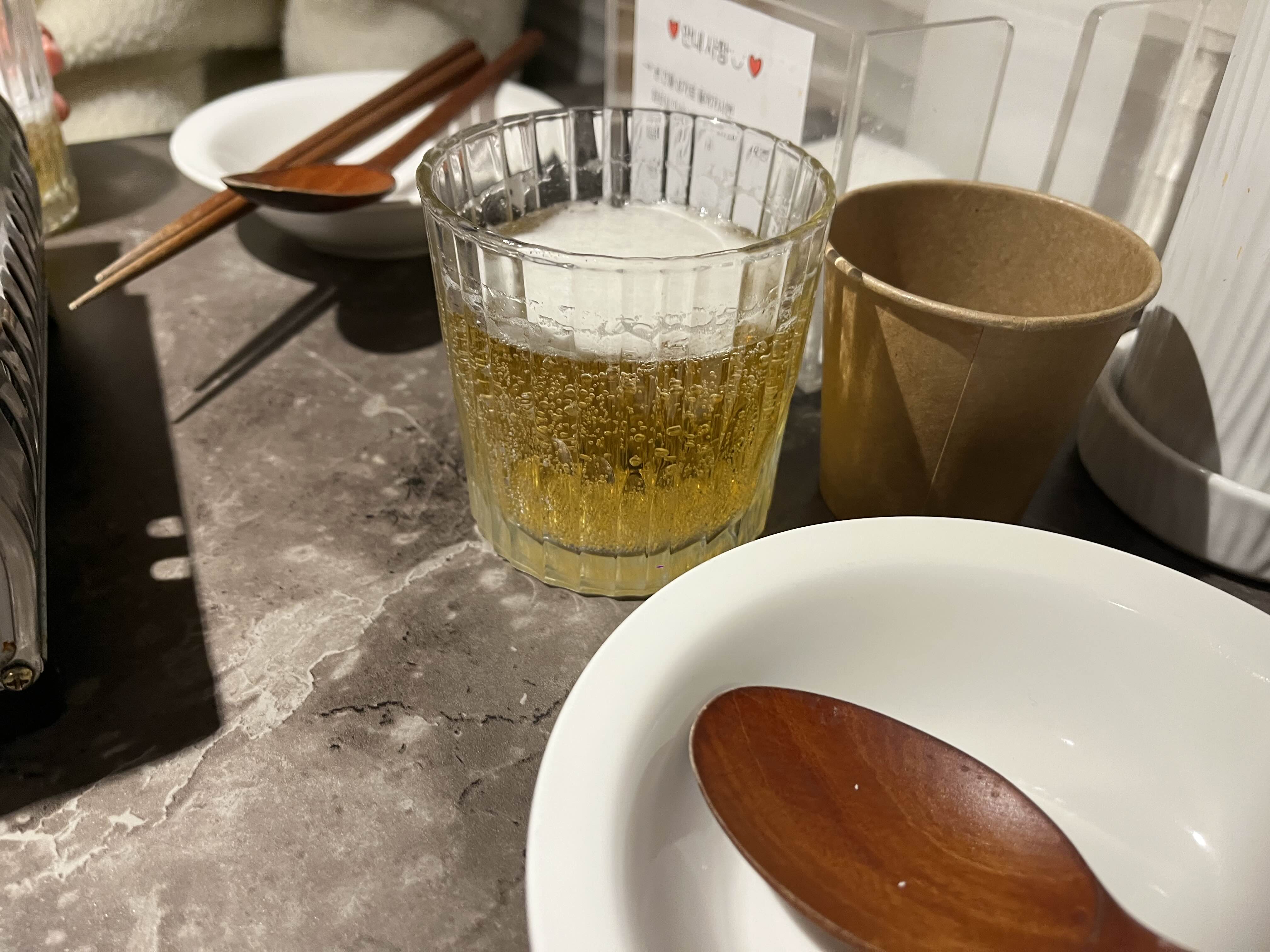 나와 친구들은 소맥을 마시기로 했다. 맥주와 소주를 주문했더니 이렇게 예쁜 잔을 주셨다.