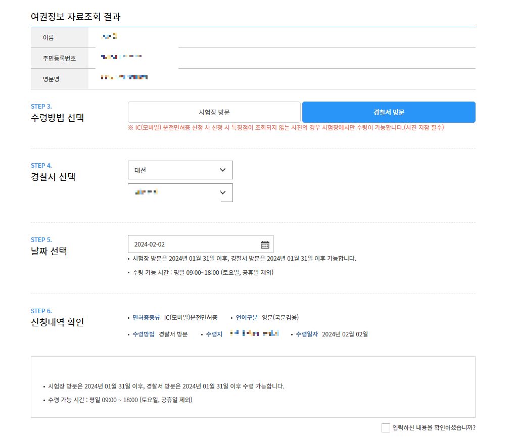 대전은 운전면허시험장이 한쪽 구석에 있어서 경찰서를 방문해 새로운 면허증을 수령하기로 했다.