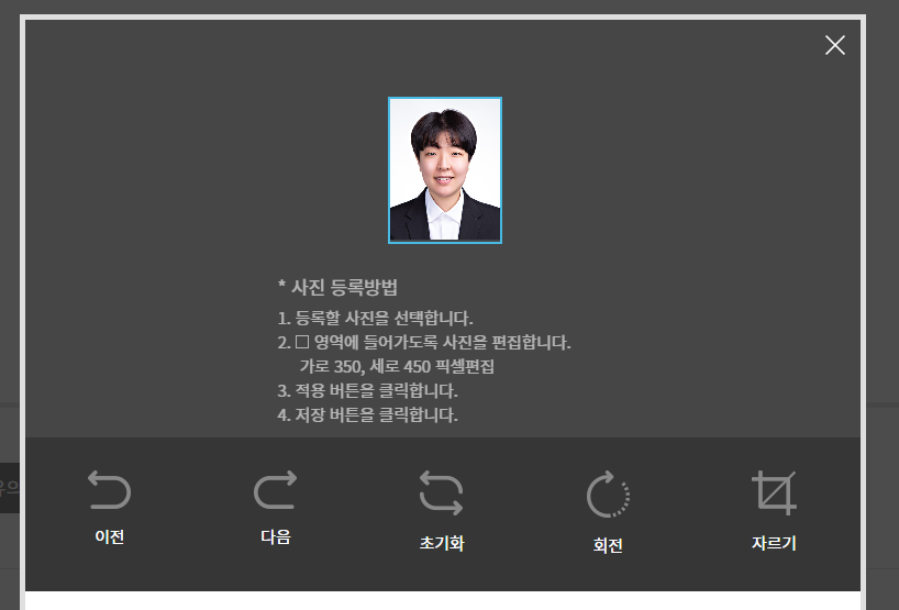 사진은 6개월 이내 촬영한 증명사진으로 첨부하면 된다.