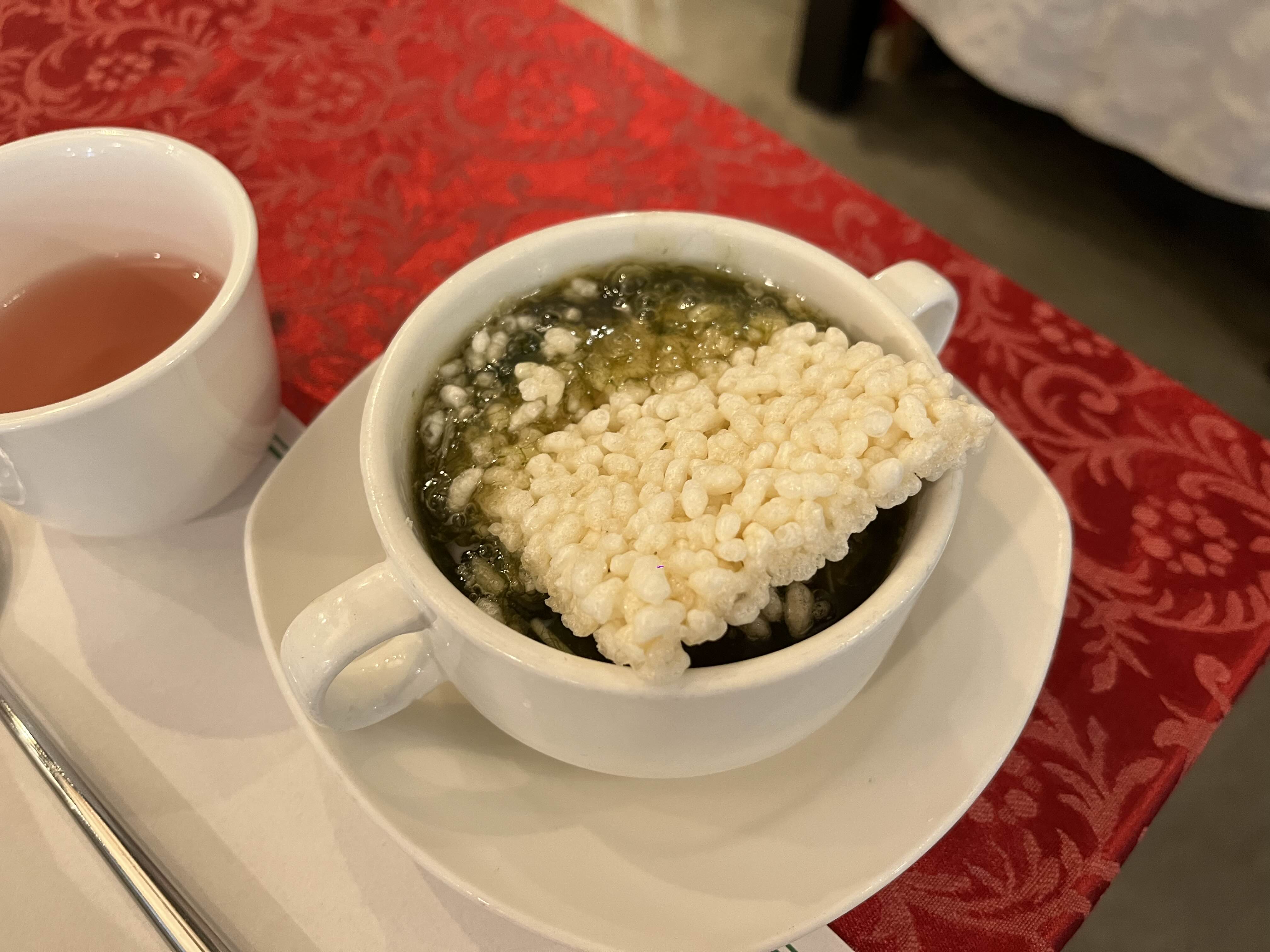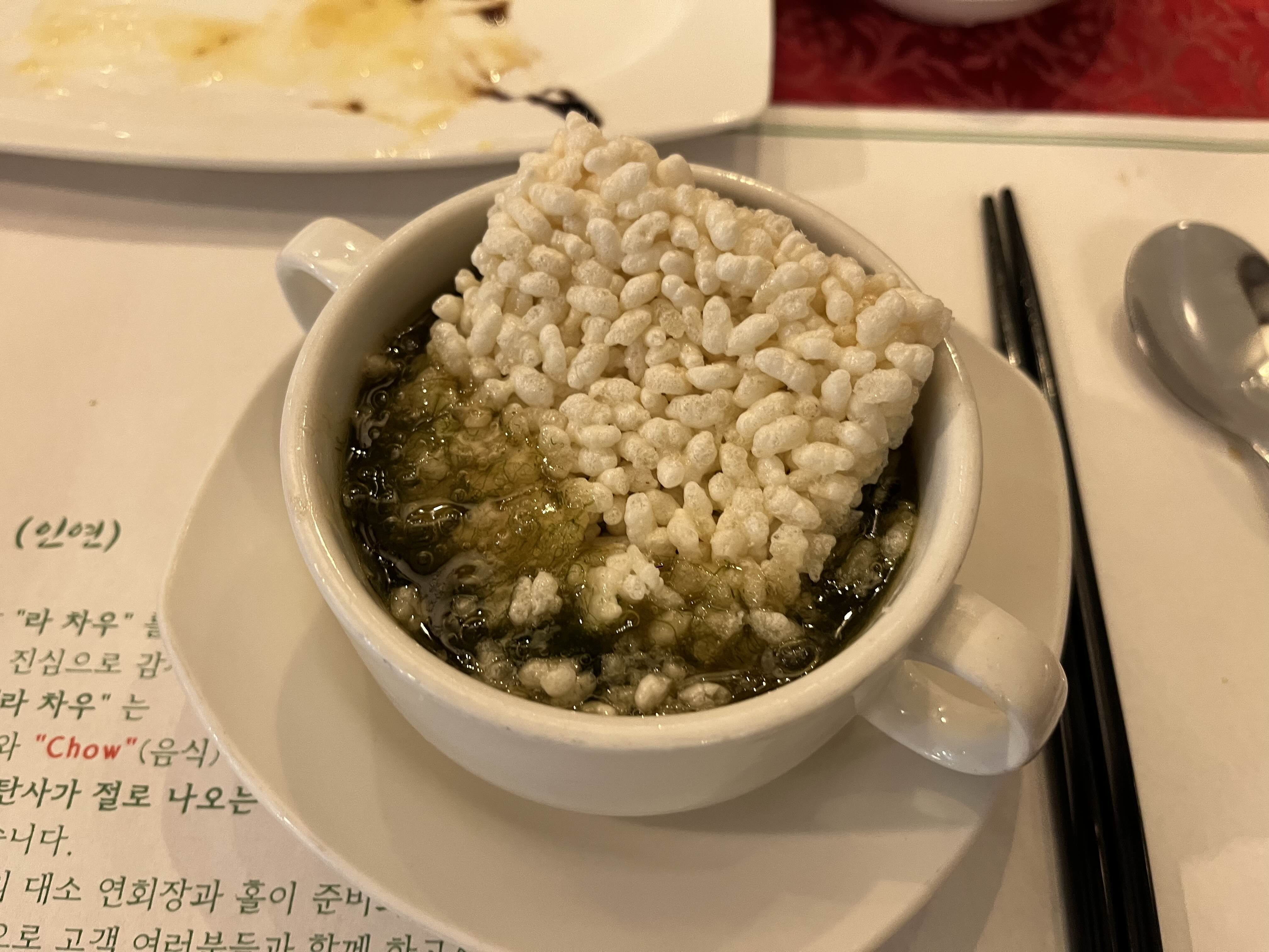 두 번째는 내가 정말 좋아하는 해물 누룽지 스프다. 메뉴에 해물누룽지스프라고 되어있는데 이 날은 매생이를 넣어 끓였다. 새우도 있었던 것 같고? 아무튼 고소하고 든든해서 벌써 배가 부를 것만 같다. 대전 중식 코스 요리