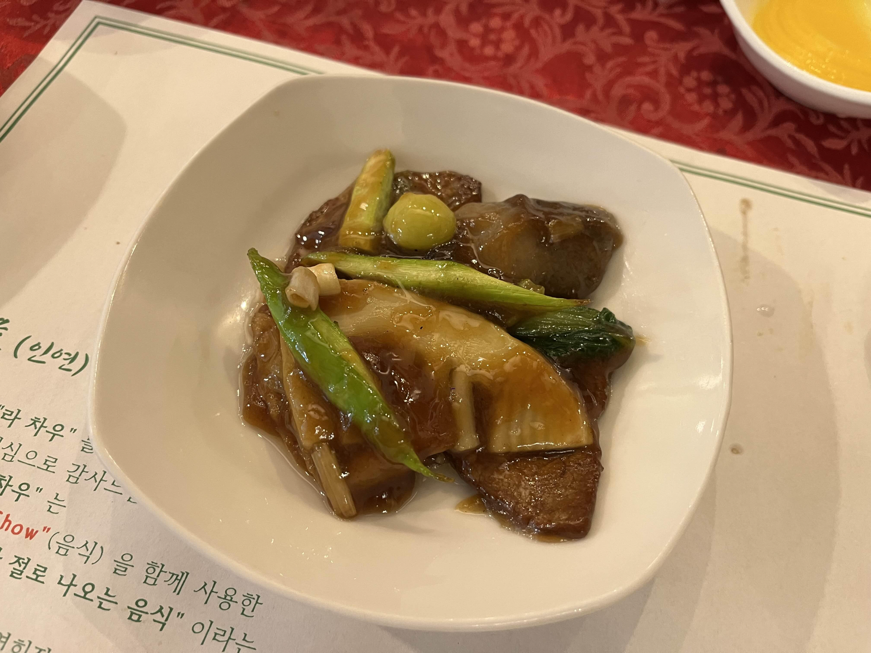 다음은 조리장 특선요리다. 소고기와 죽순을 볶은 요리인 듯 한데, 그저 그랬다. 워낙 맛있는게 많다보니 소고기라고 해서 으뜸가지는 않는다. 그래도 다 먹는다.