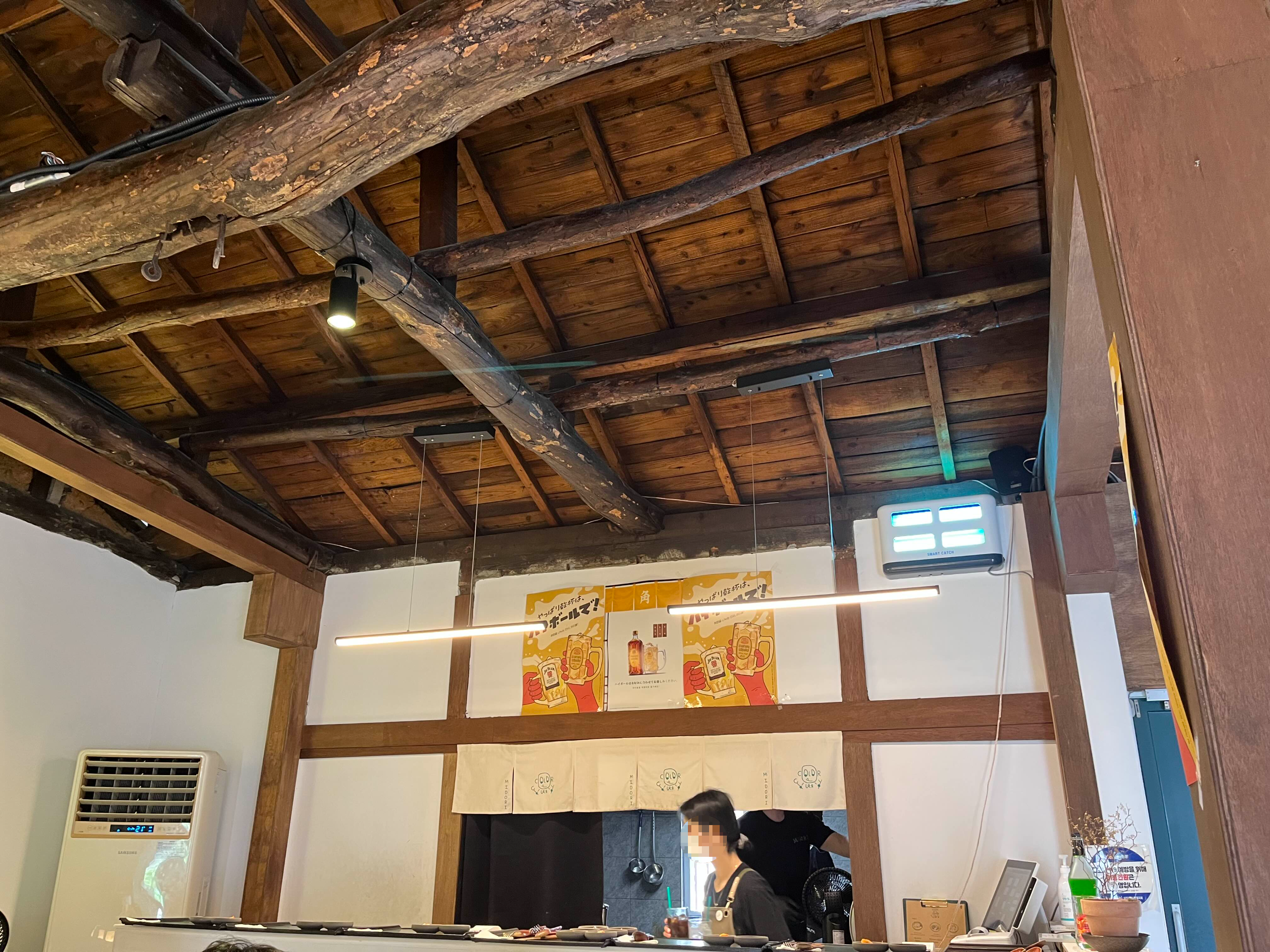 미도리 카레 밖에서 보았던 청록색 커튼 쳐진 공간이다. 여름에는 이곳에 에어컨이 없어서 좀 더웠던 것 같다. 통유리로 되어있어 더 그런지도 모른다.