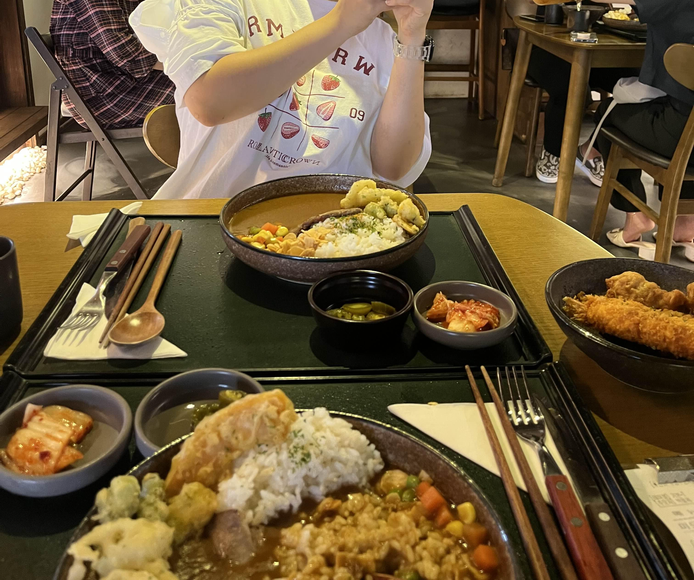 건너편에 앉은 동행인은 평소 카레를 좋아하는데 푸짐한 카레가 나온 것이 기분 좋았는지 사진을 연신 찍어주었다.