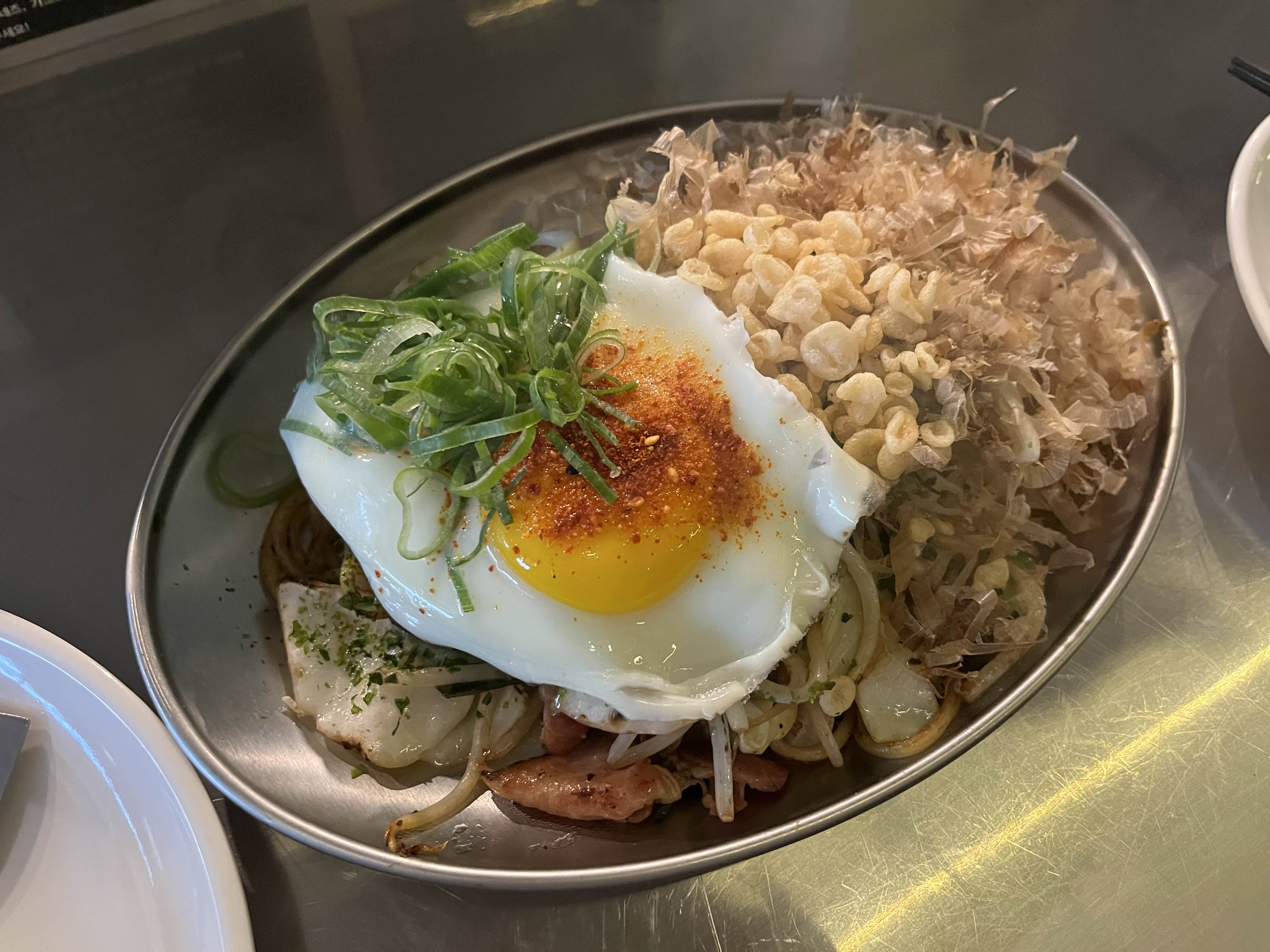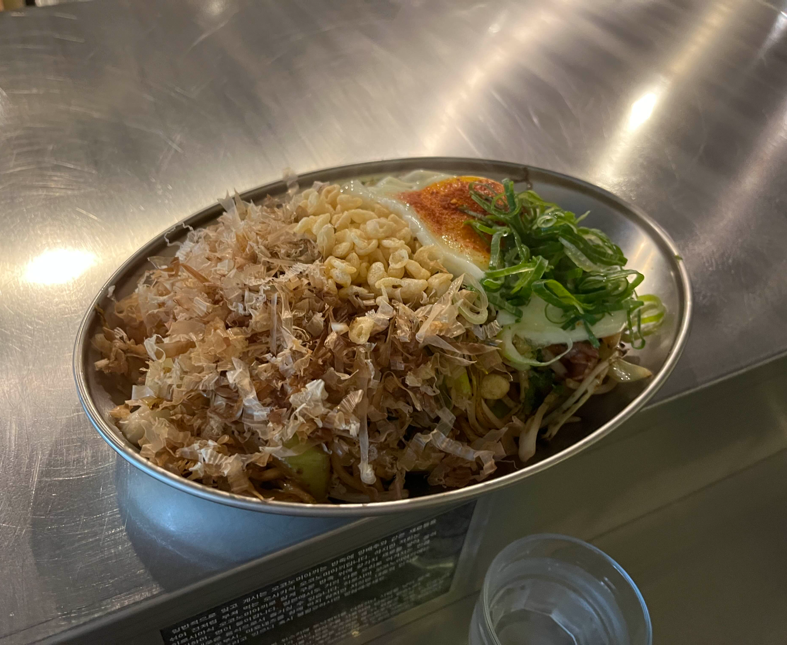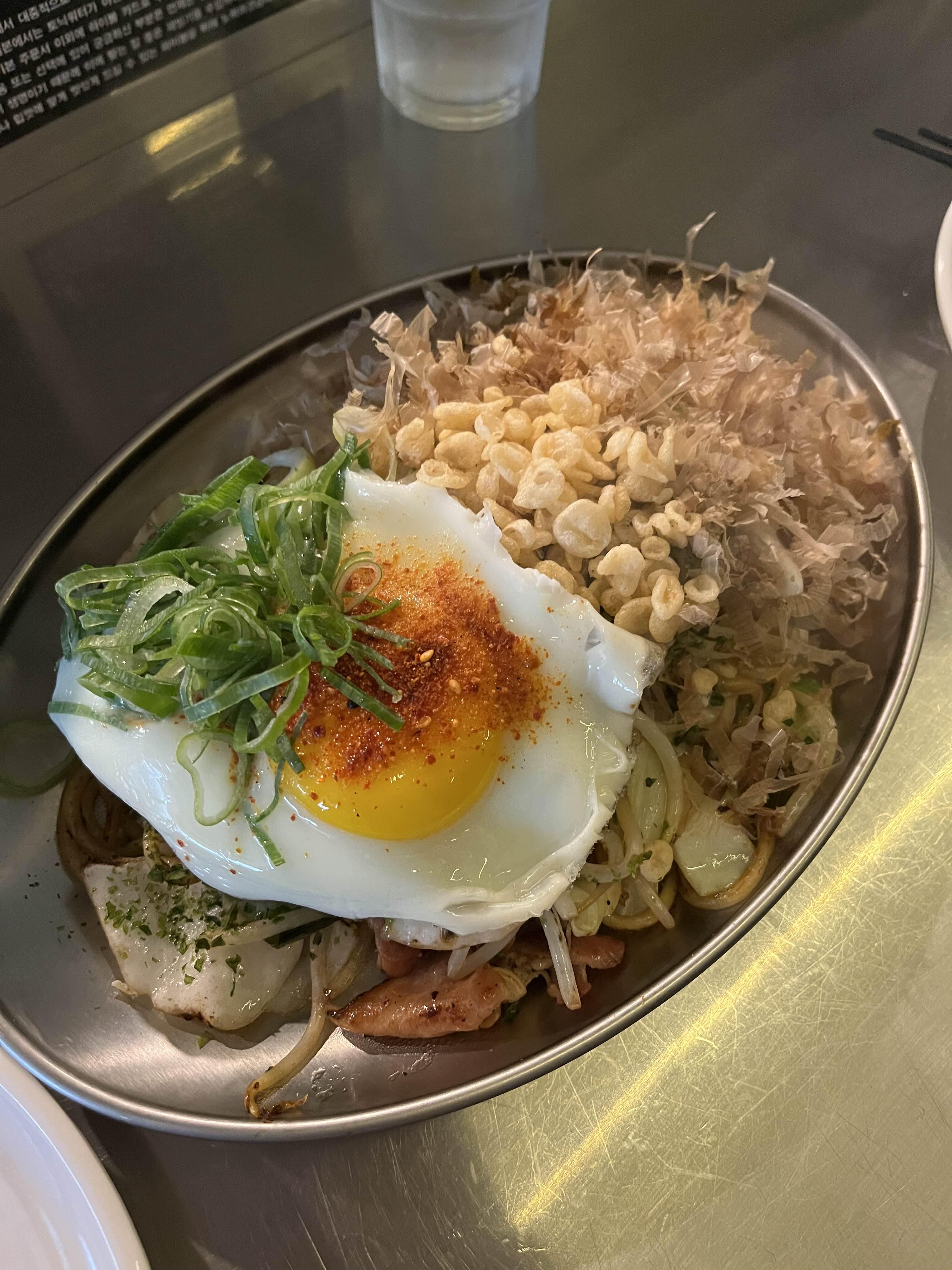 가쓰오부시가 풍성하게 올라가있고 숙주와 반숙이 짭짤한 맛을 감싸주어서 맛이 좋았다. 야끼소바와 오코노미야끼 둘 다 좀 짠 편이었는데 짜서 못 먹을 정도는 아니었다..간이 세긴 하다.