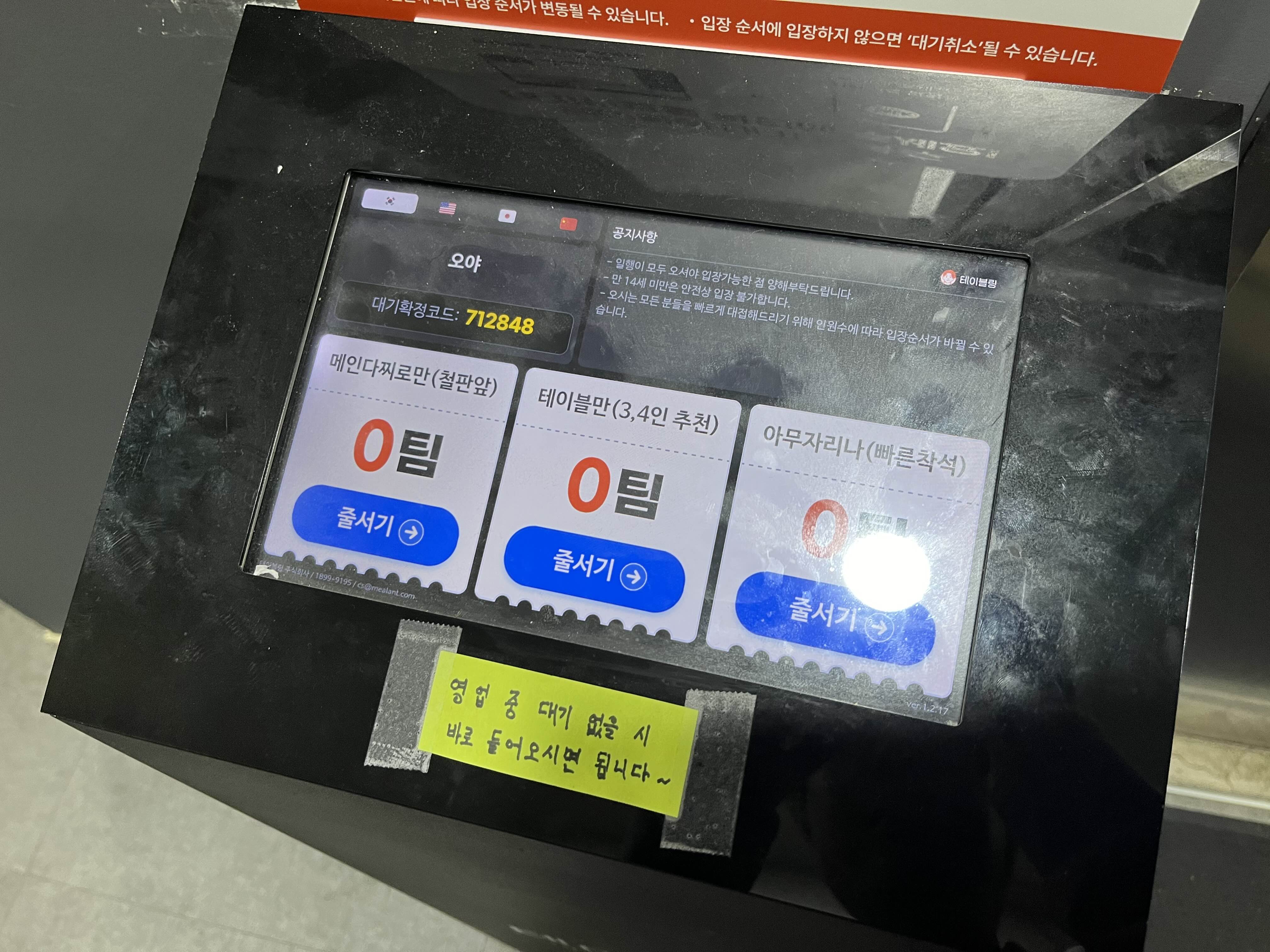대기 없을 시 바로 입장하면 된다고 한다. 저녁 시간에 대기가 있다면 예약 시스템을 통해 웨이팅할 수 있다.