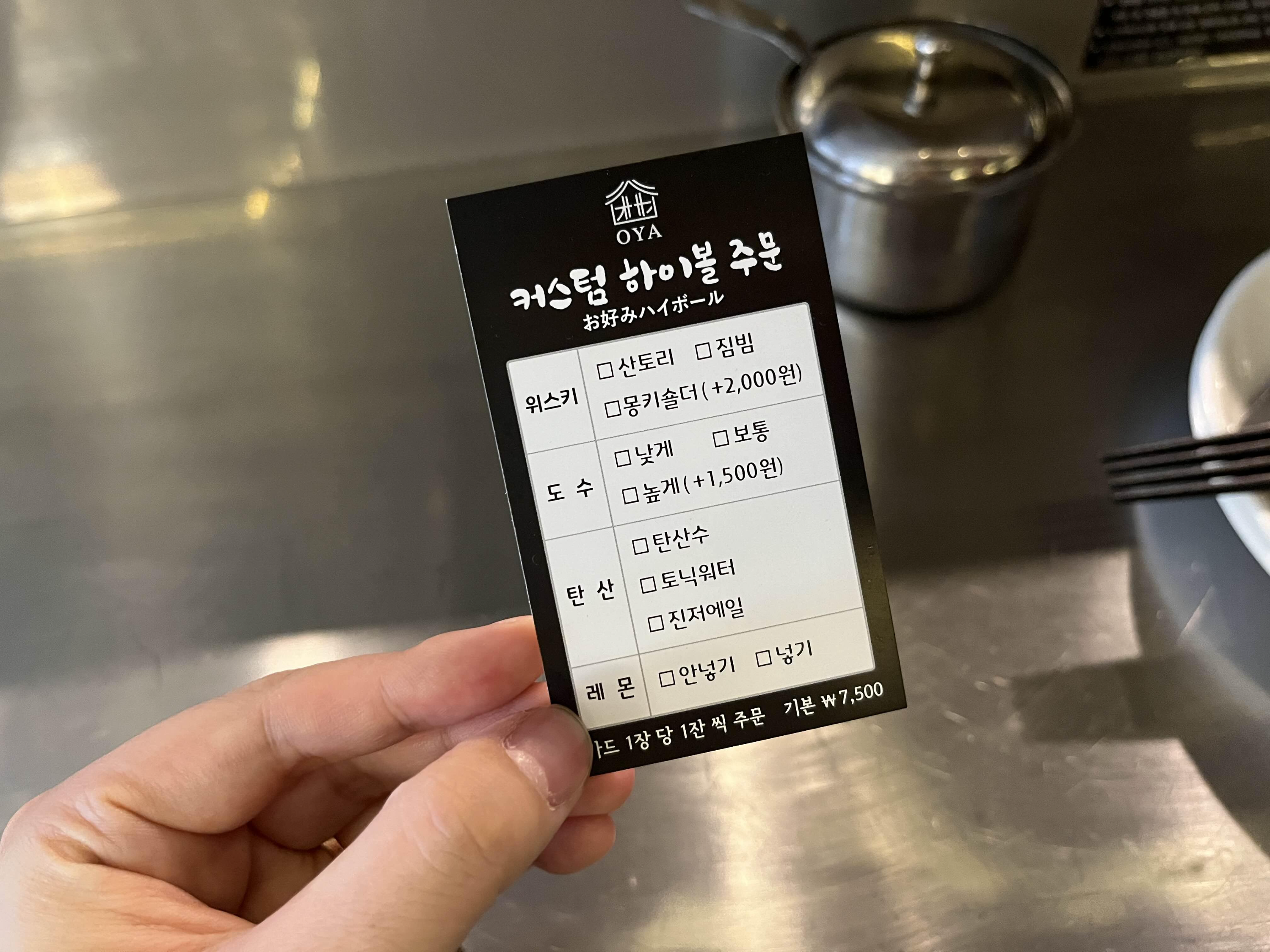 커스텀 하이볼도 주문할 수 있는데 낮이고 해서 주문하지 않았다. 체크해서 카드를 주면 주문된다고 한다. 재밌는 방식이다