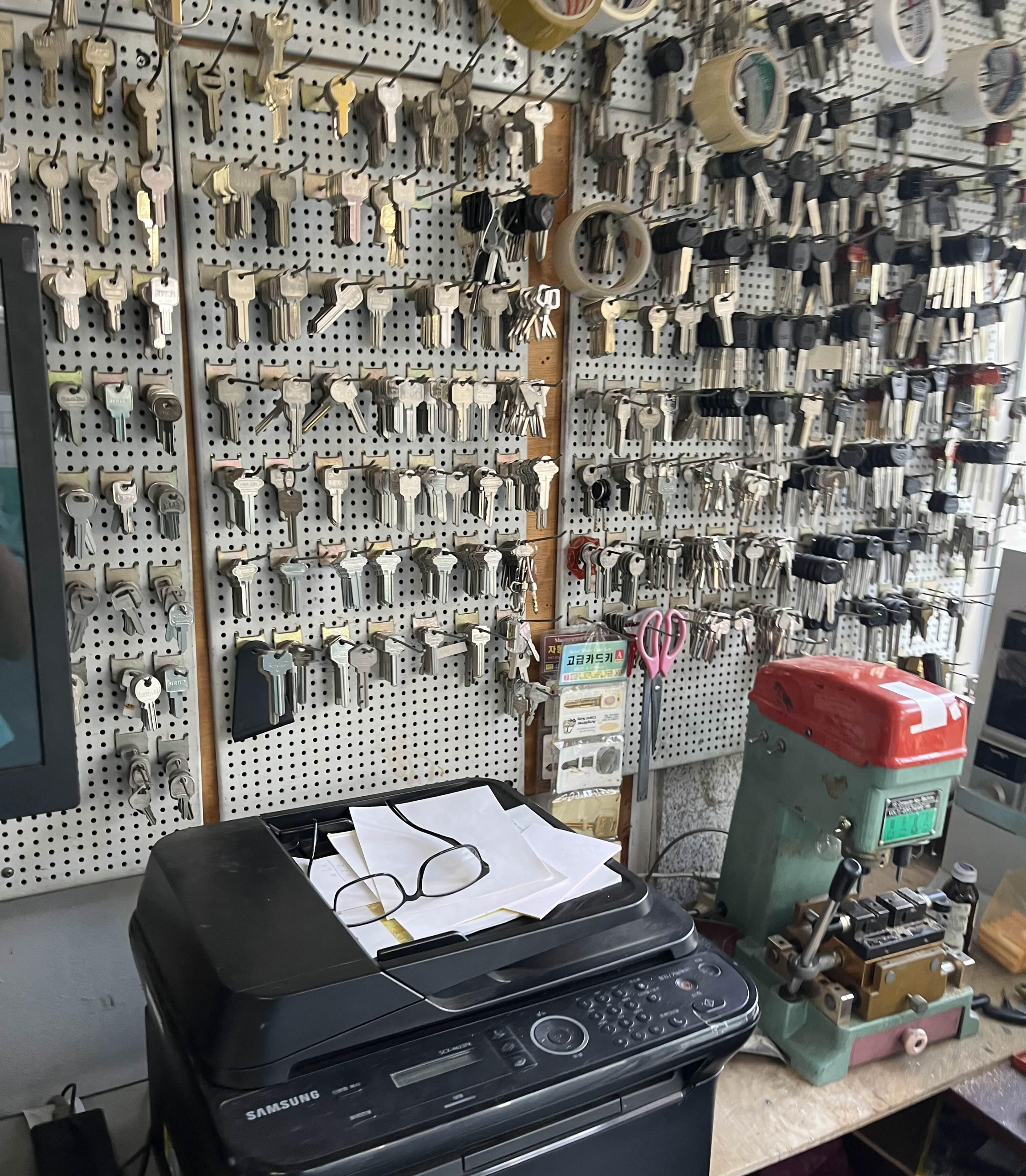 다른 도장집들처럼 도장과 열쇠를 같이 하는 곳이다. 내가 갔을 때 문이 잠겨 있어서 문옆에 적혀 있는 핸드폰번호 전화드렸더니 바로 건물 뒤편에 있으시다고 자전거를 타고 오셨다 ㅋㅋ 주차는 가게 바로 옆에 할 수 있을 것 같다.