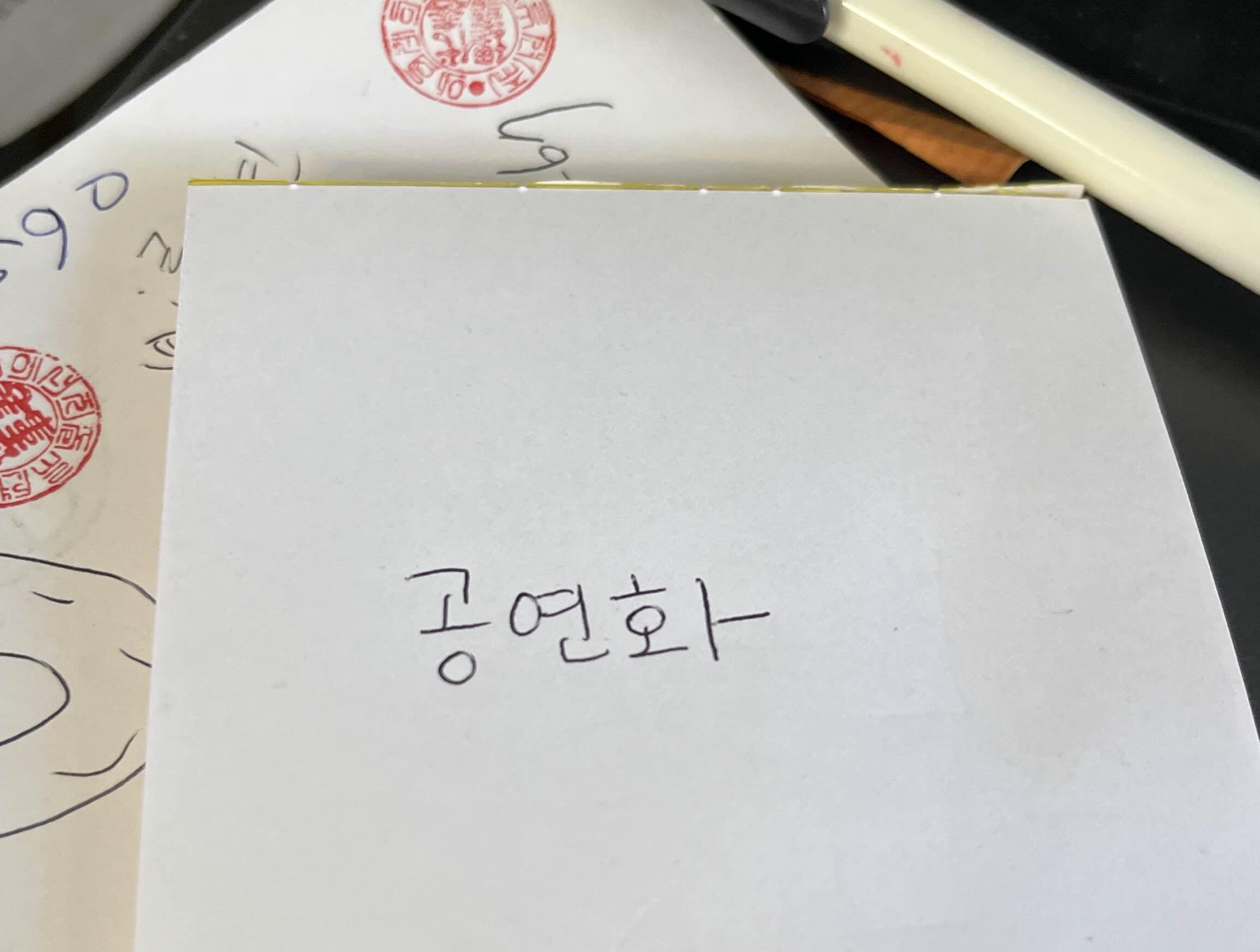 도장 파겠다고 하니 사장님이 이름을 글자로 써보라고 하셔서 또박또박하게 작성해 드렸다 ㅋㅋ 입으로 말했다가 혹시 틀리면 안 되니까 써보라고 하시는 것 같다.