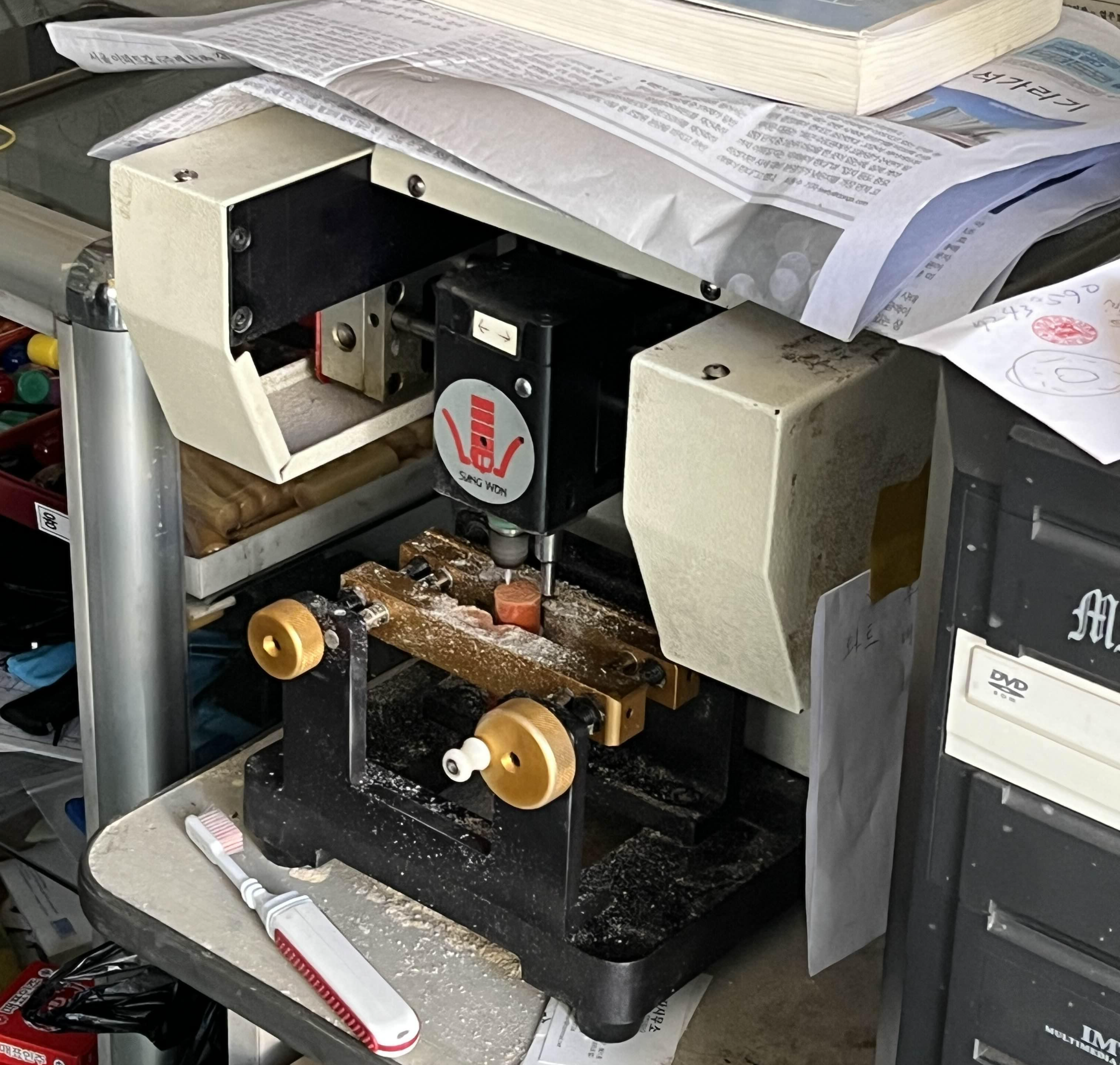 나는 도장을 아저씨가 직접 파주시는 건줄 알았는데 기계가 이렇게 열심히 파고 있었다 ㅋㅋㅋ 그래서 인터넷에서 도장이 엄청 싸게 팔리는구나! 싶기도 했다. 배송을 기다리기 싫어서 가서 만들었는데 신기한 광경을 볼 수 있었다.